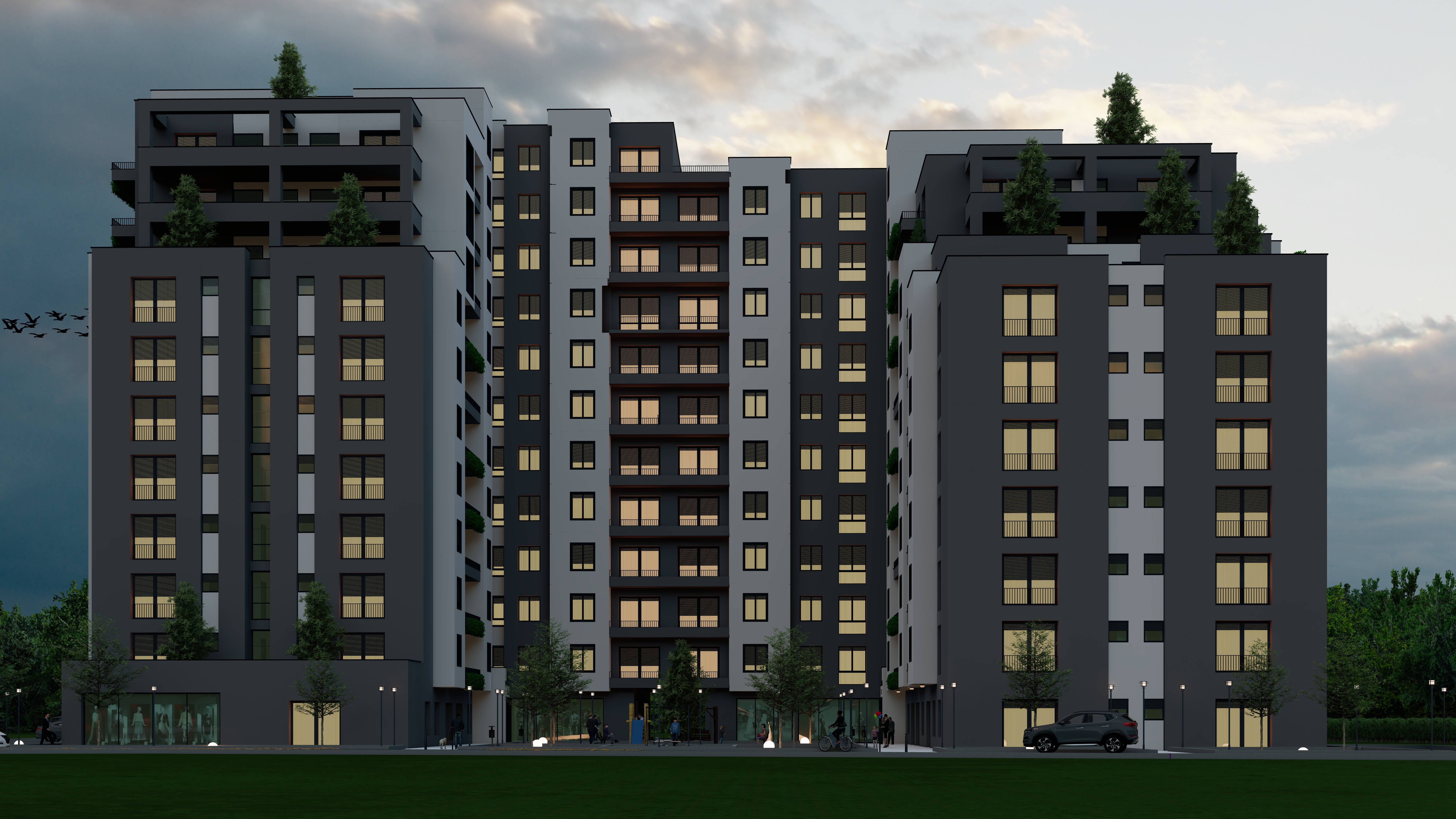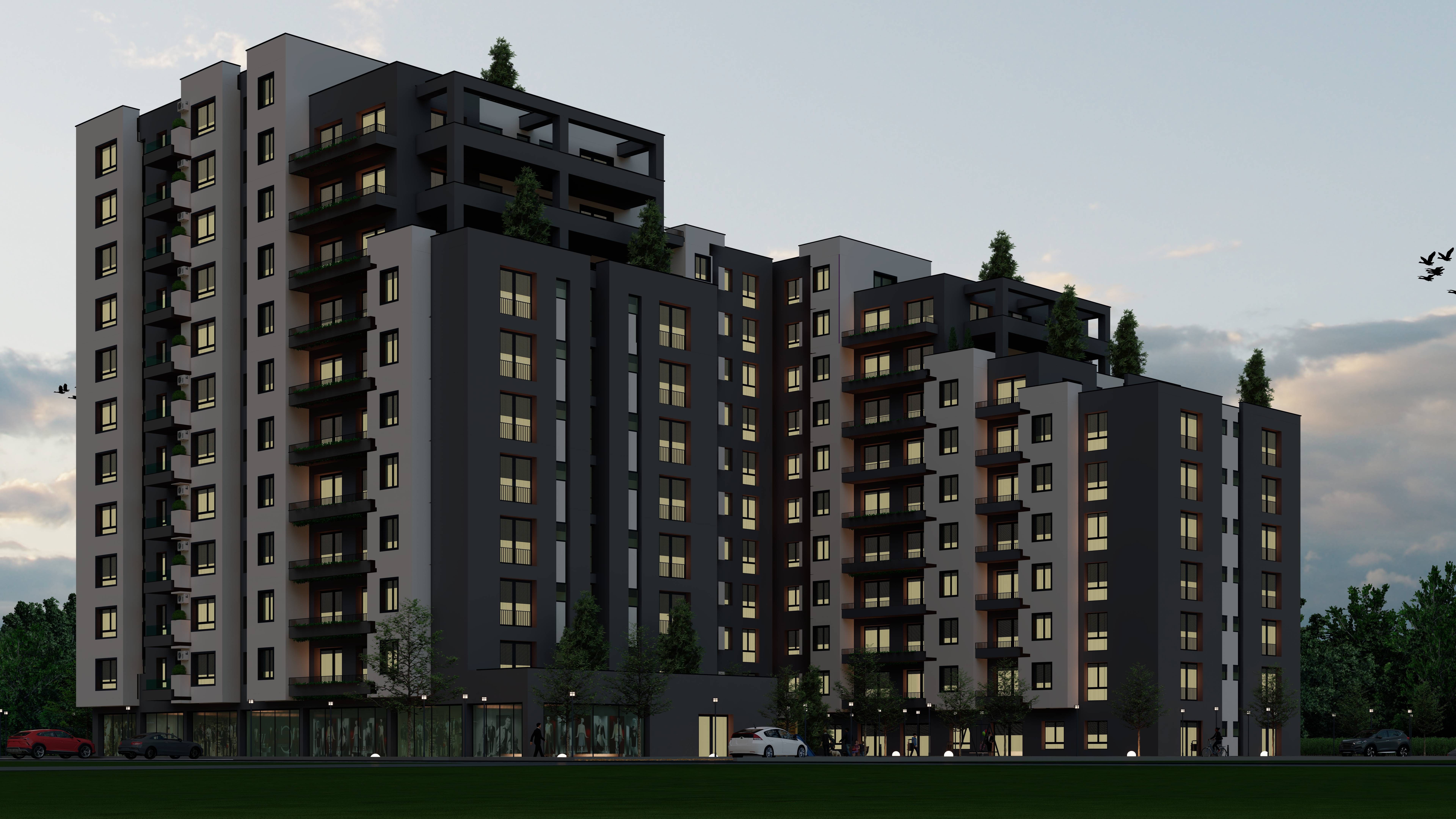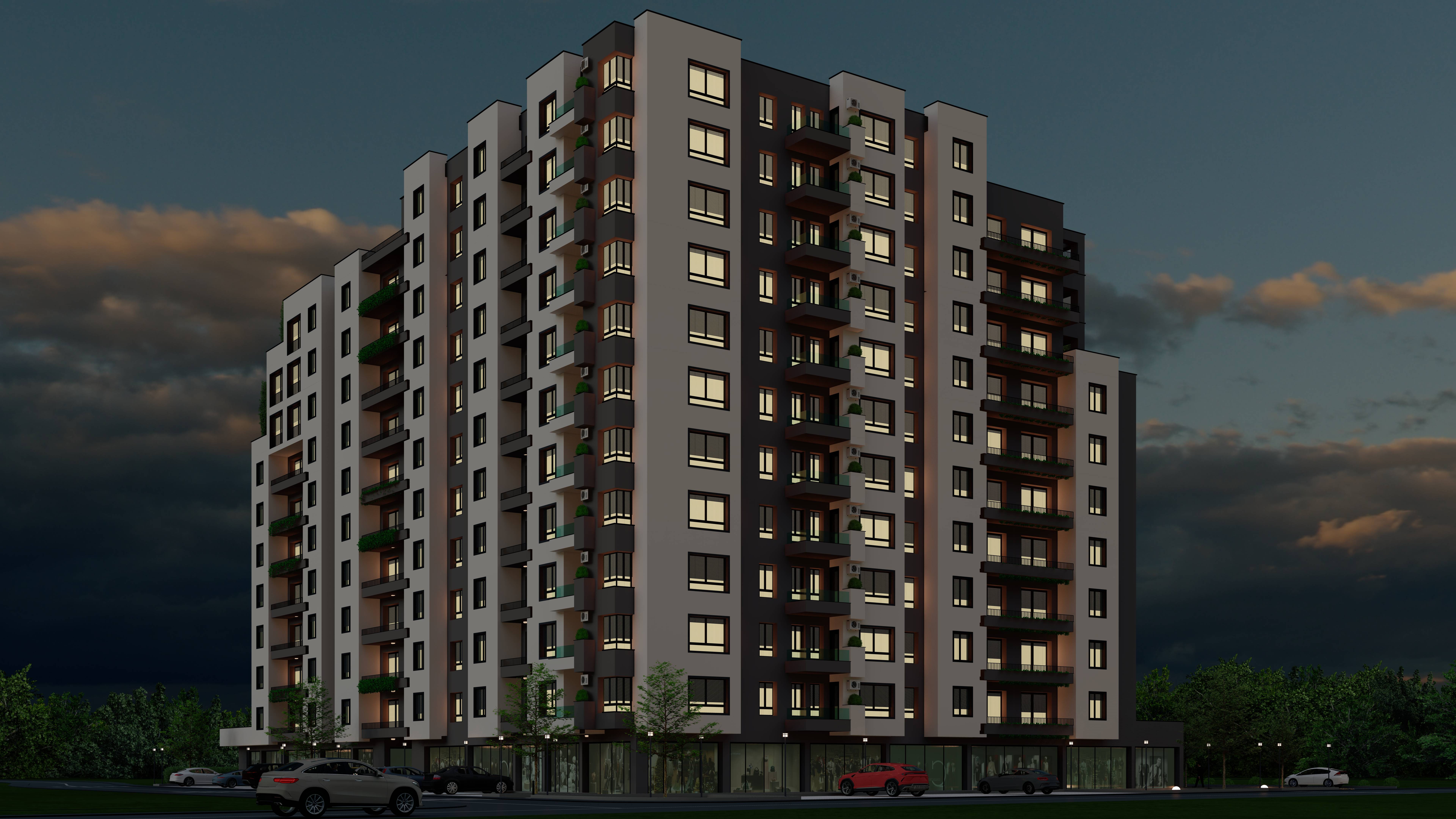 Kompleksi ka dy blloqe me gjithesej ,200 apartamente dhe 10 lokale afariste.
